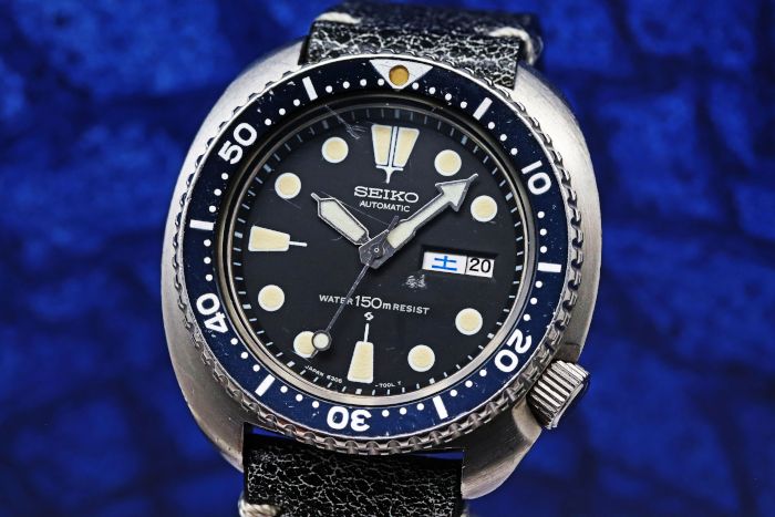 セイコーの150mダイバーシリーズの3代目「通称63サードダイバー」Ref.6306-7001 が入荷しました。この「通称63サードダイバー」は、ハック機能が付いていない海外向けモデルではなく、1976年から79年までの短期間に国内向けとして製造されたハック機能付きの希少モデルです。