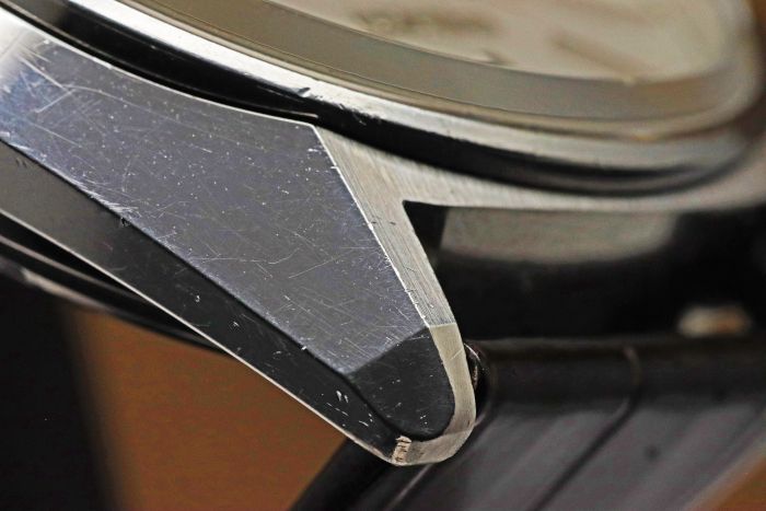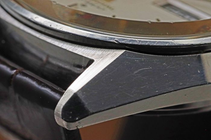 ケースには使用に伴う小傷が見られ、ラグ8時方向には打ち傷がありますが、ケースエッジは比較的しっかりと残っており、全体のフォルムは良好に保たれています。ガラス風防には薄く浅い傷がございますが、肉眼ではほとんど気にならない程度です。