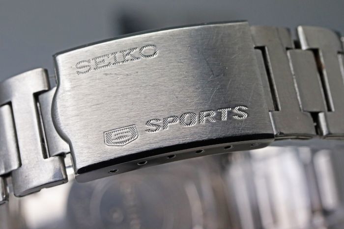 ブレスレットは、「SEIKO 5 SPORTS」刻印バックルを備えた